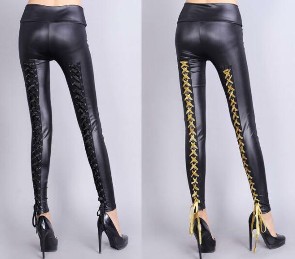 D2510レディース レギンスパンツ レギパン スキニ― ストレッチ ウェストゴム 編み上げ