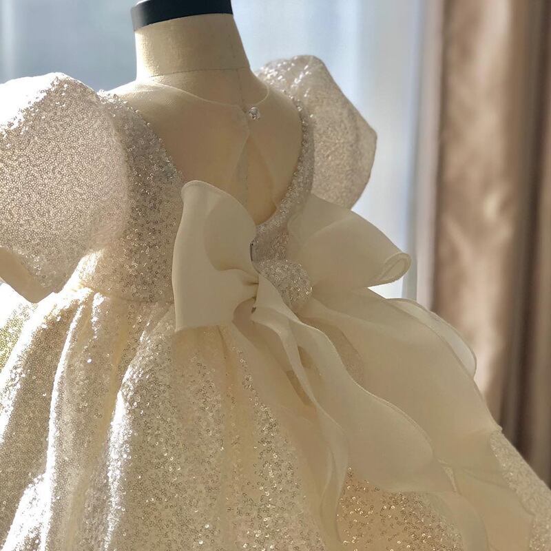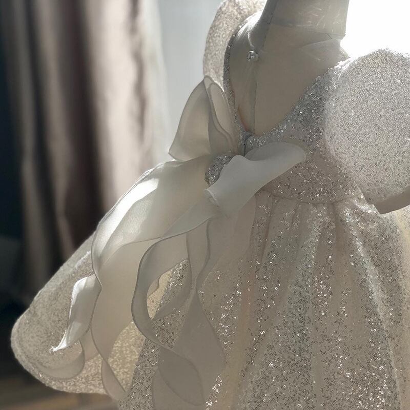8376ドレス キッズ ベビー 女の子ドレス フォーマルドレス ワンピース スパンコール 七五三 白 80cm-160cm