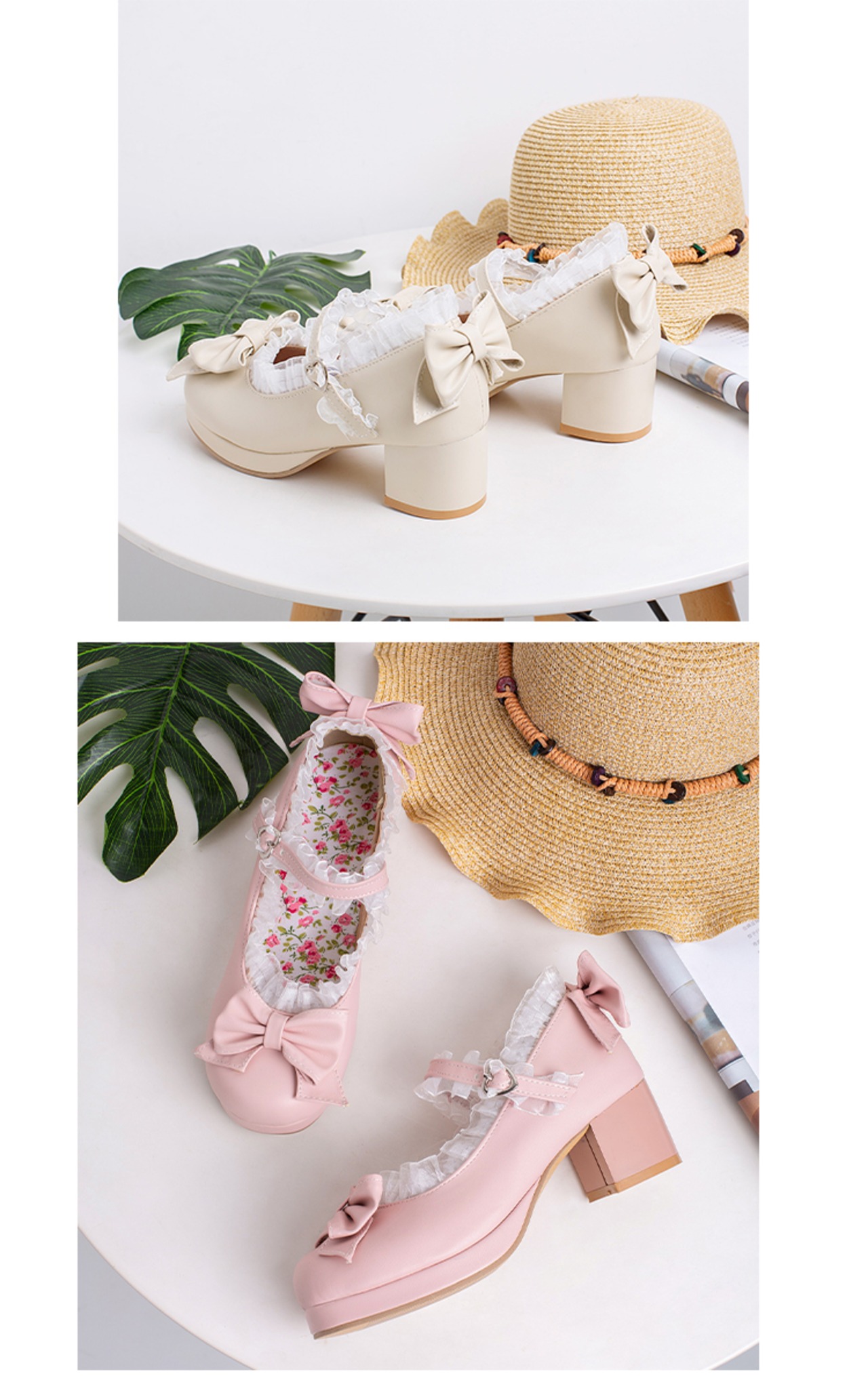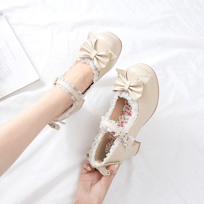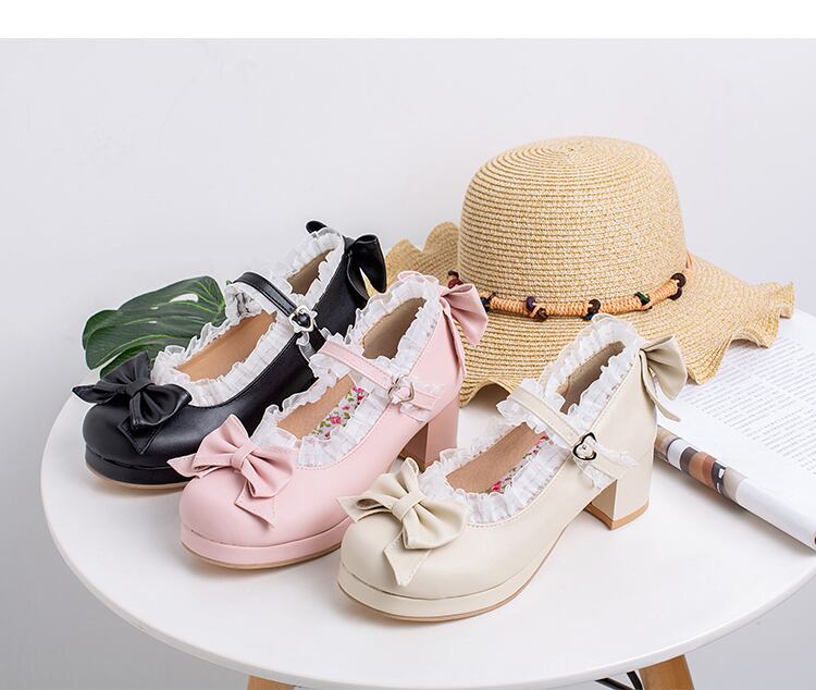 7104パンプス レディース ロリータ シューズ 靴 アンクルストラップ リボン付 ミディアムヒール コスプレ靴 LOLITA レザーシューズ 革靴 大きいサイズ 小さいサイズ21.5cm-26.5cm
