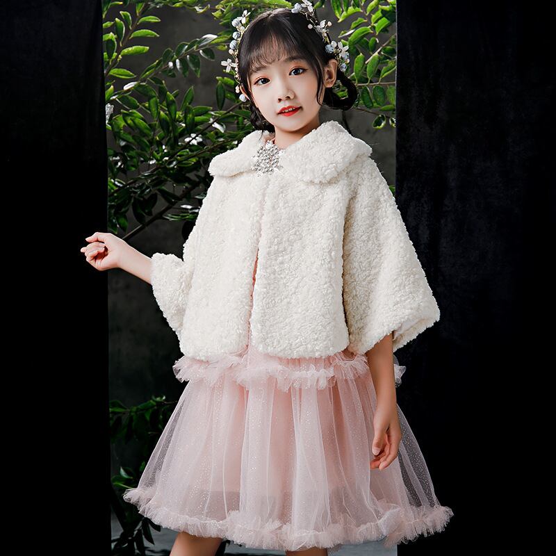 1516キッズ ボレロ 子供 ドレス 子ども フォーマル カーディガン 女の子ポンチョ キッズ ボレロ マント ファー 白色100cm-165cm
