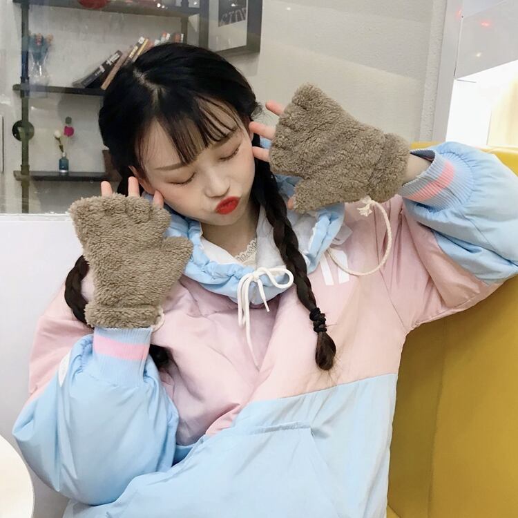 手袋 かわいい レディース 冬 指なし 猫爪柄 もこもこ 防寒5104