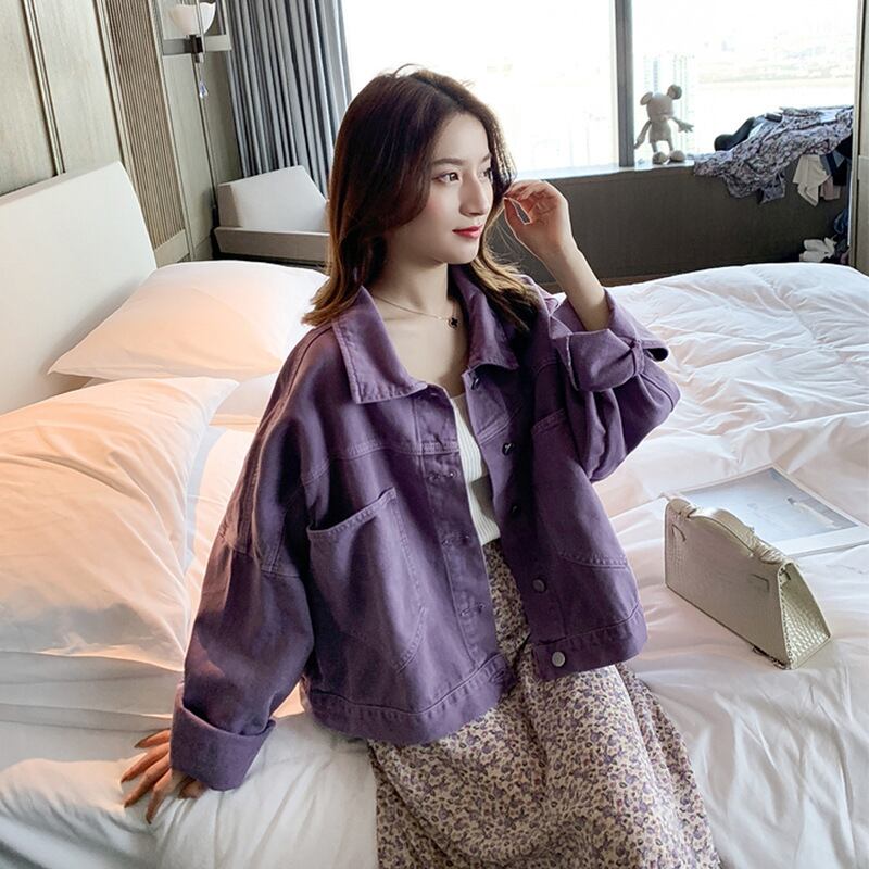 9617秋春 デニムジャケット パープル 紫 レディース ショート デニムコート Gジャン 長袖 ジージャン BF風 大きいサイズ 原宿系 ヴィンテージ レトロ