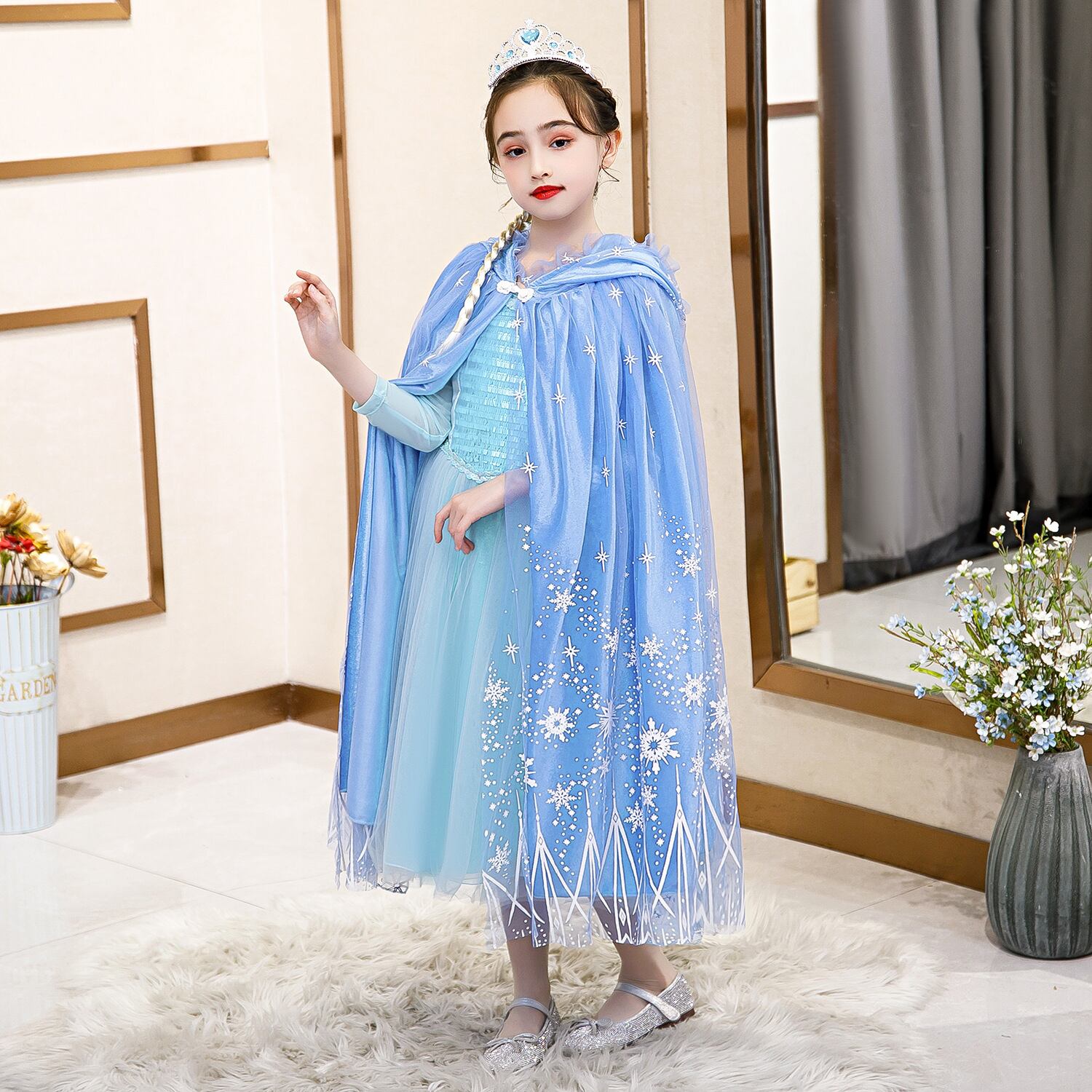 3576エルサ マント お姫様 プリンセス クリスマス キッズ ケープ ポンチョ ハロウィン 仮装 子供 コスチューム 変装 仮装 女の子衣装 身長90cm-150cm