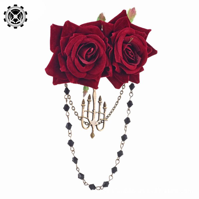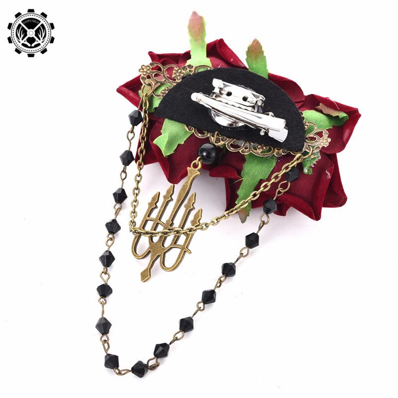 3733髪飾り ブローチ ゴシック ロリータ コスプレ ローズ レース 仮装 パーティー イベント 文化祭