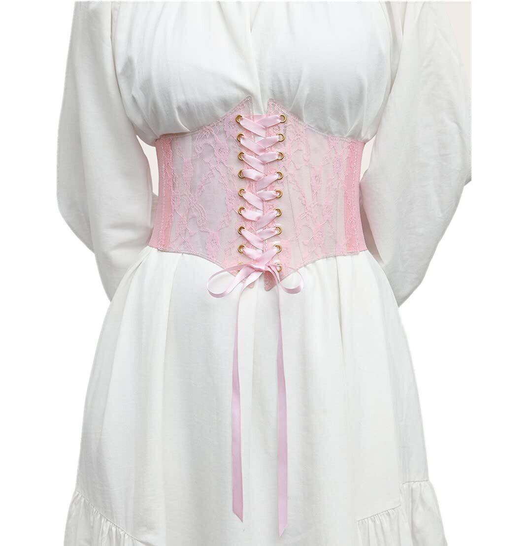 b7210レディース 太ベルト 幅広 レースベルト カジュアル ウエストベルト コルセット レトロ ヴィンテージ 編み上げ
