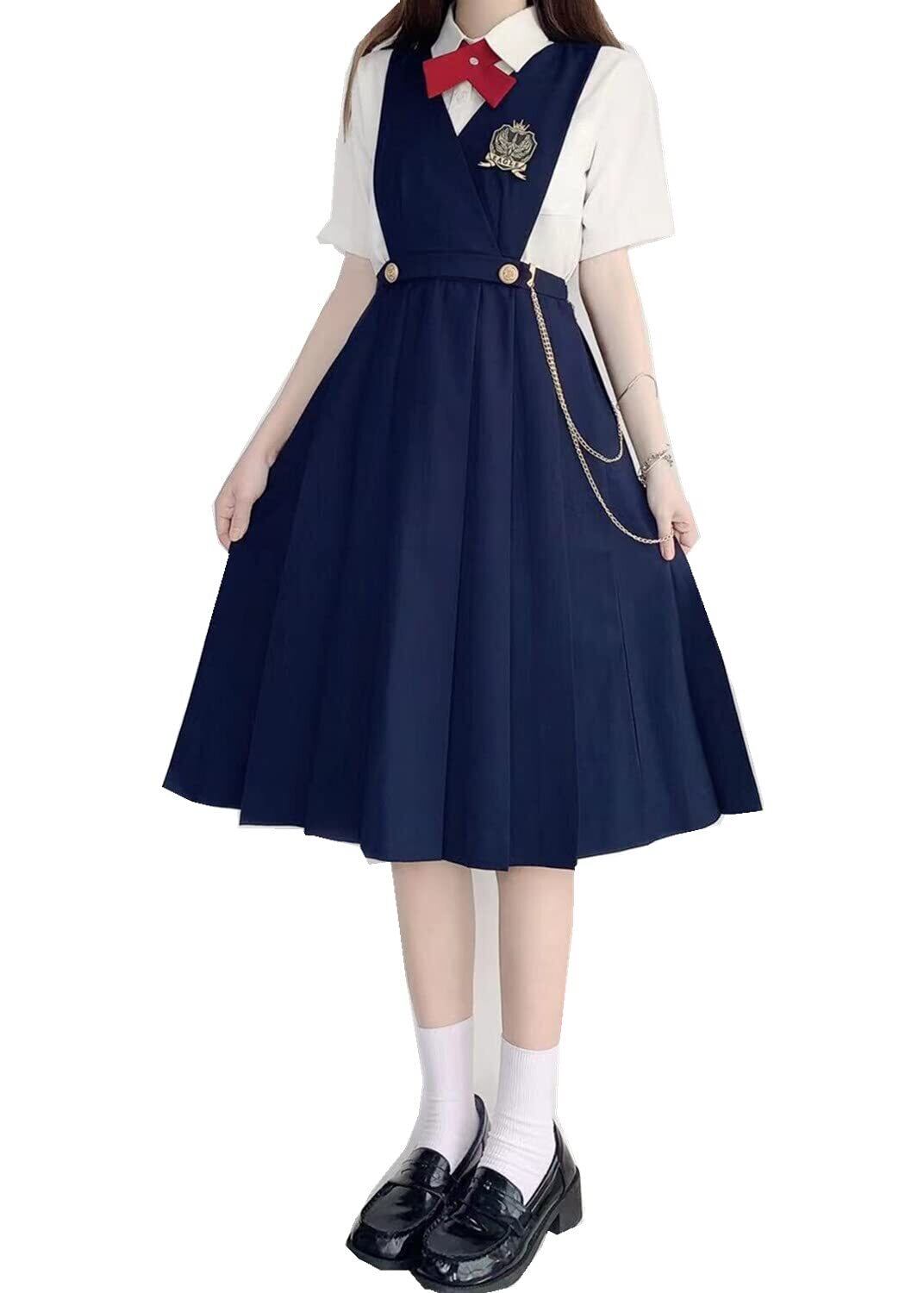 JK 女子高生 S5242 制服セット ワイシャツ+リボン+ジャンパースカート 春秋 長袖 半袖 夏 セーラー服 白シャツ ブレザー 学生服