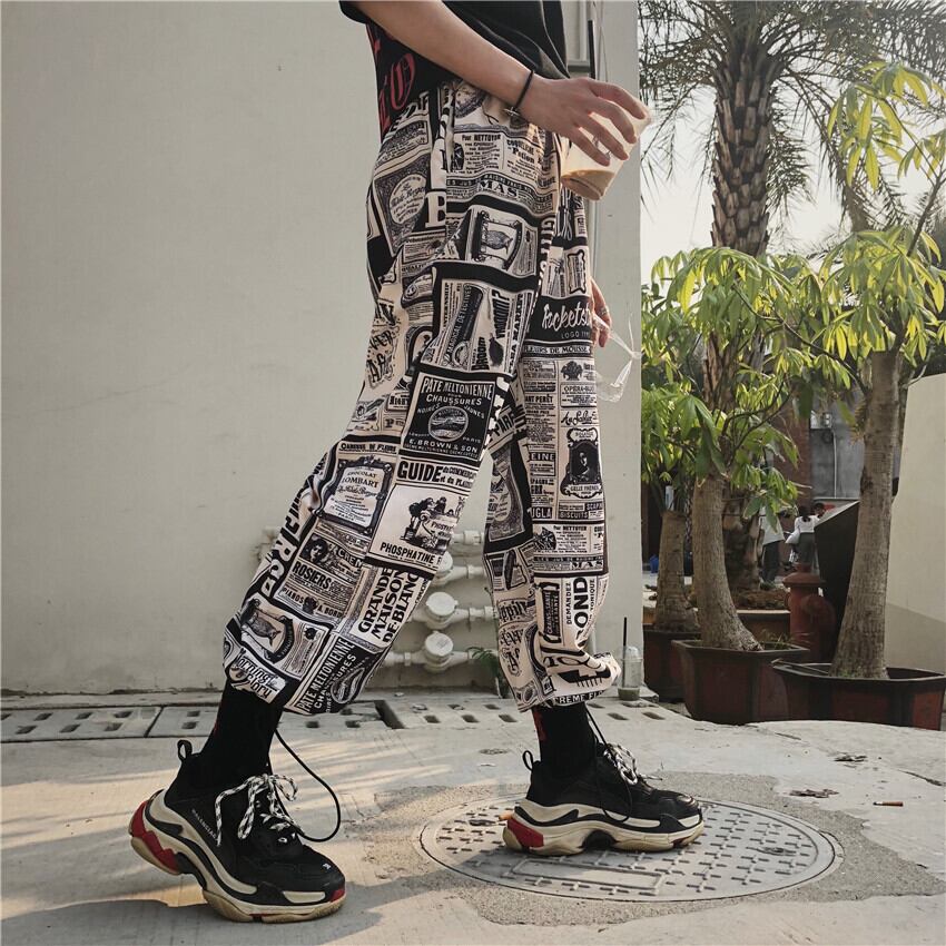 2712パンツ 黒 レディース 衣装 ゴシック プリント柄 ヒップホップダンスウェア 原宿系 カジュアルパンツ ロングパンツ ストリート