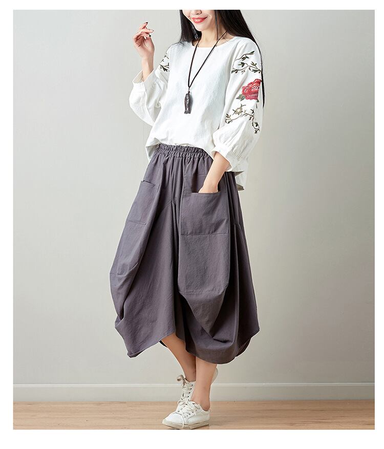 2905ランタン スカート ゆったり レディース リネン スカート ルーズ 多色